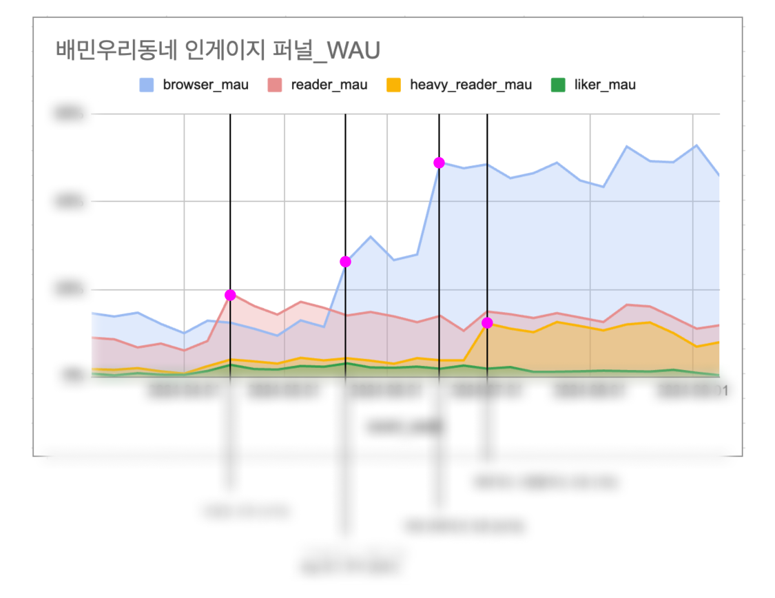 그래서 특정 기능의 배포 전과 후 지표가 어떻게 바뀌었는지를 먼저 확인했는데요. 기존까지 인지하지 못했던, 분석 커뮤니케이션 오류를 발견했던 사건이 있었다.