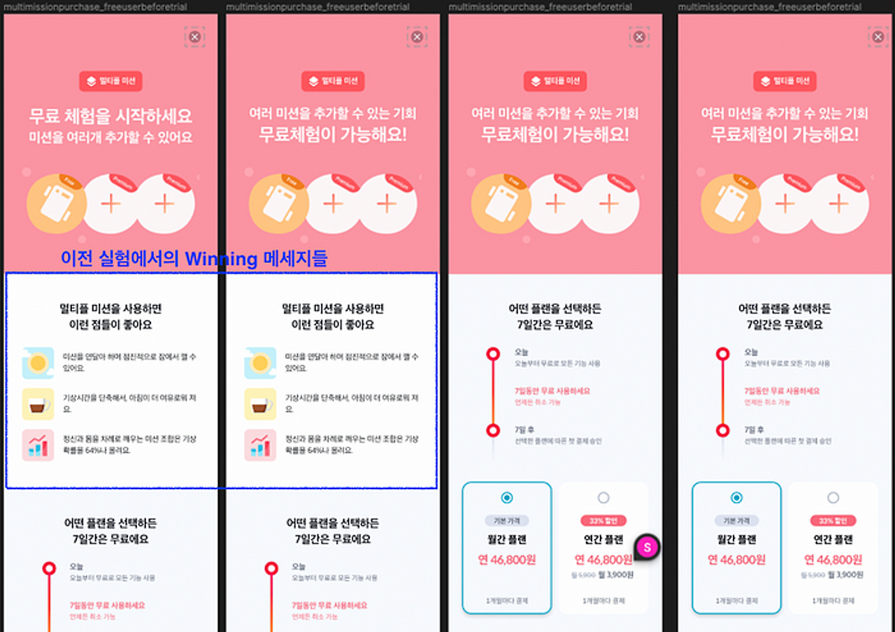 두 실험 모두 목표는 구독 전환율 증진이었다.