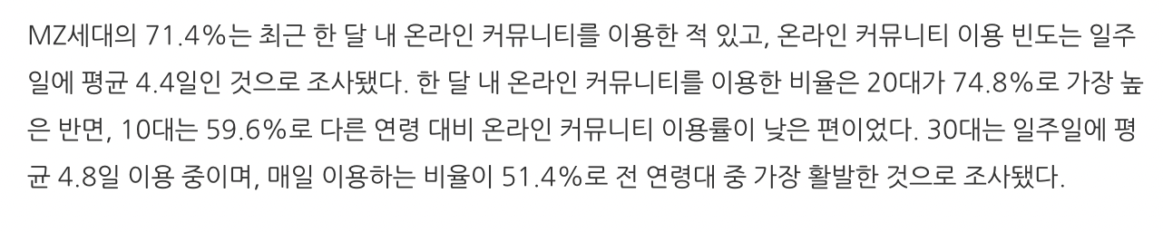 단발성 온라인 커뮤니티에 많은 시간을 할애하는 Z세대에 비하여 밀레니얼 유저들은 오프라인과 온라인 활동을 넘나드며 직접 경험을 공유하고 장기적으로 교류할 수 있는 공간을 원한다.