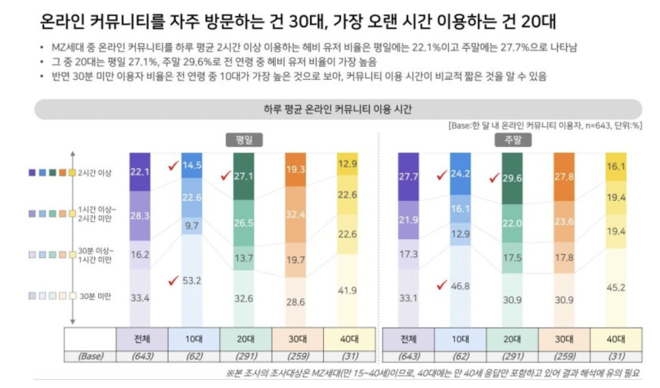 그래서 우리는 커뮤니티를 '자주' 들여다볼 연령대를 산정하는 것이 중요했다.